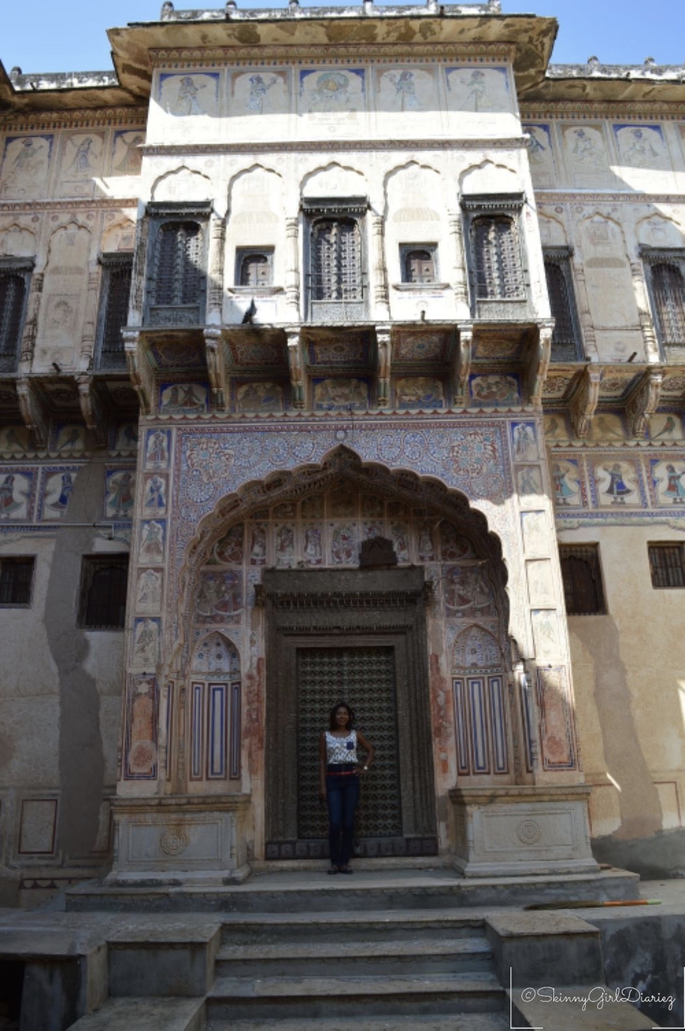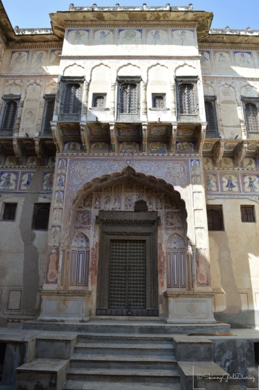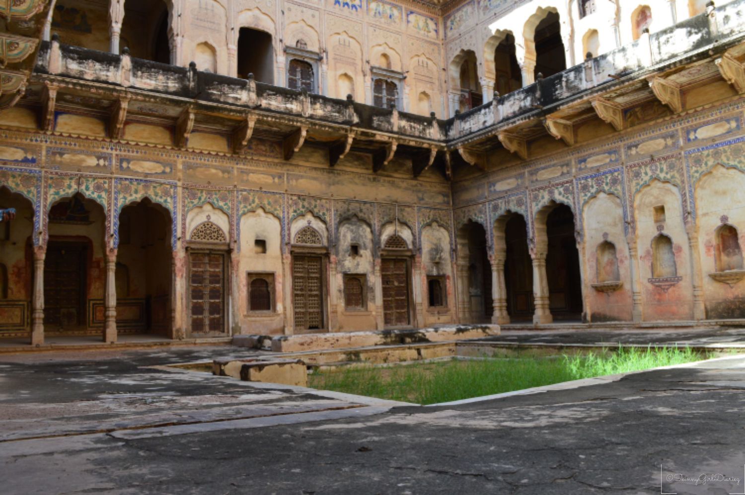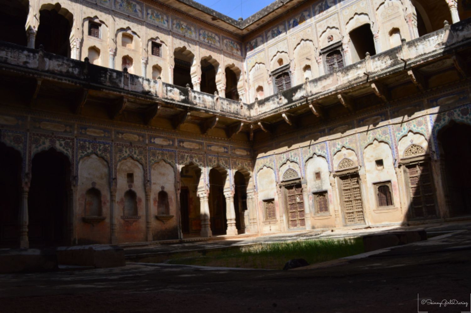 The Jhunjhunwala Haveli was one of which I had visited. This exemplifies a traditional and typical example of the Rajasthani architecture. The main features are the tall ceilings and courtyards inside. The walls and pillars have beautiful depictions. The entire architecture of the haveli has a story to tell, via the beautiful fresco paintings.