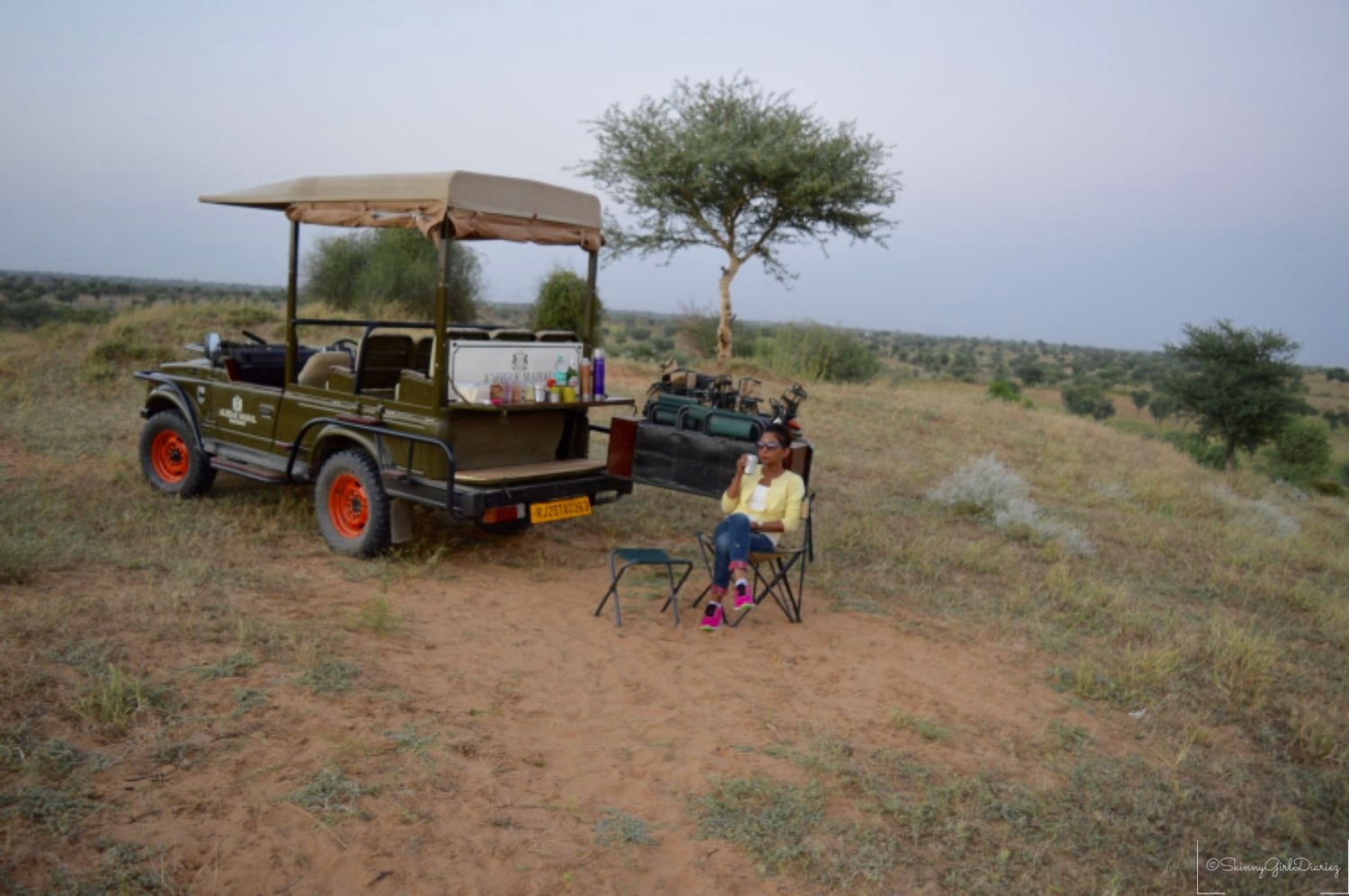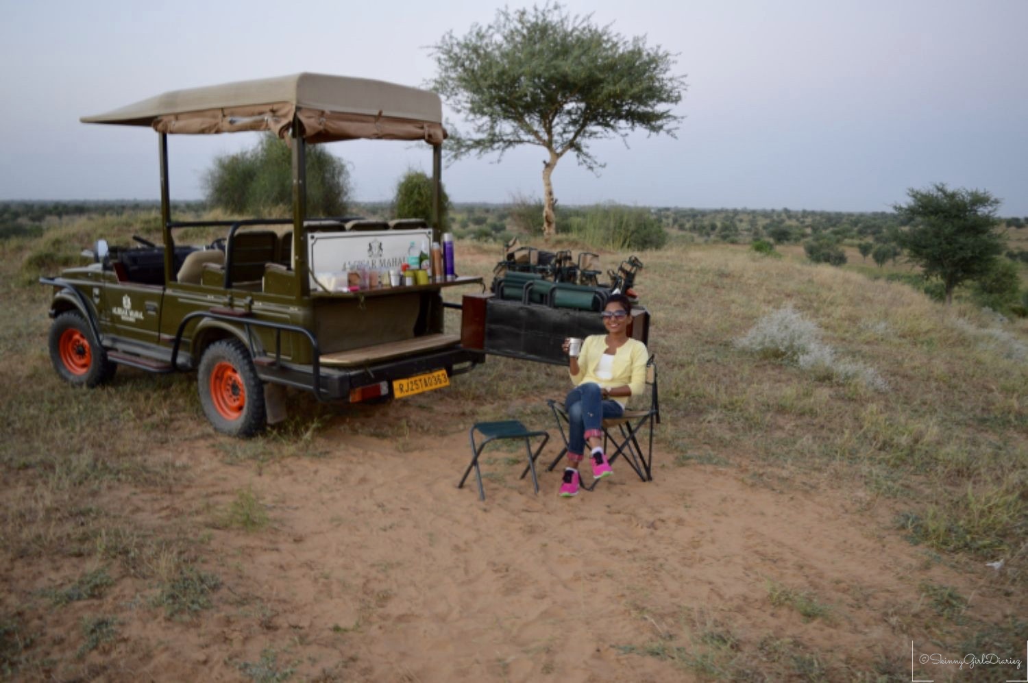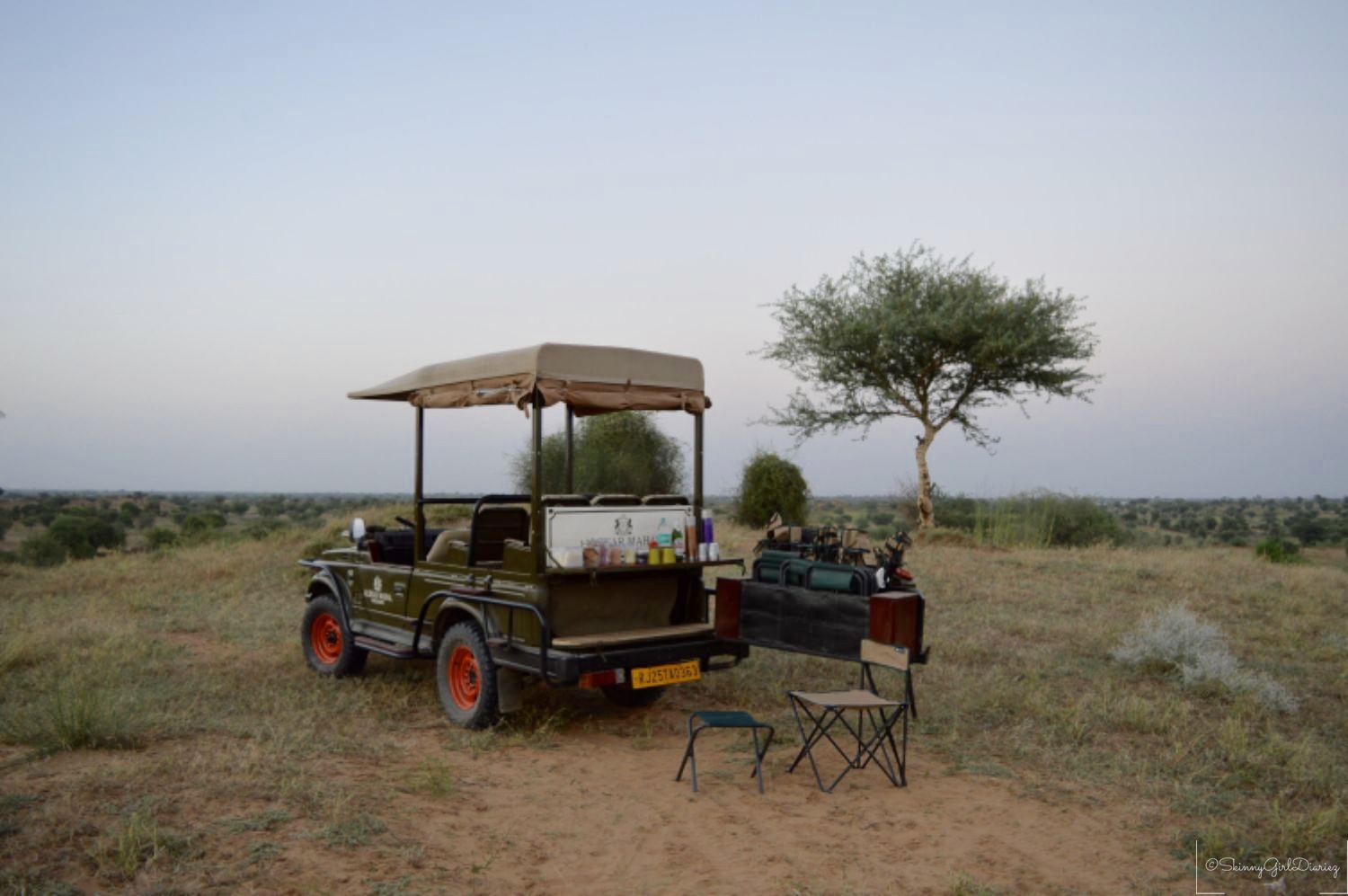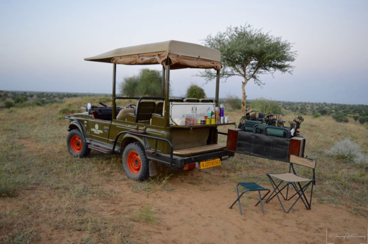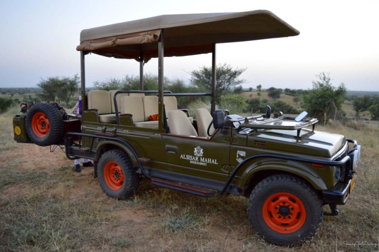 Last but not the least is the customized desert safari which is organized by Alsisar Mahal, apart from the heritage walks. I got to ride in one of the WWII restored jeeps, I had to take a picture to show off in. The safari takes you through the village and into an arid desert. You can spot various species of birds and most noticeable are the deer. You get to enjoy the sunset and refreshments are served based on preference.