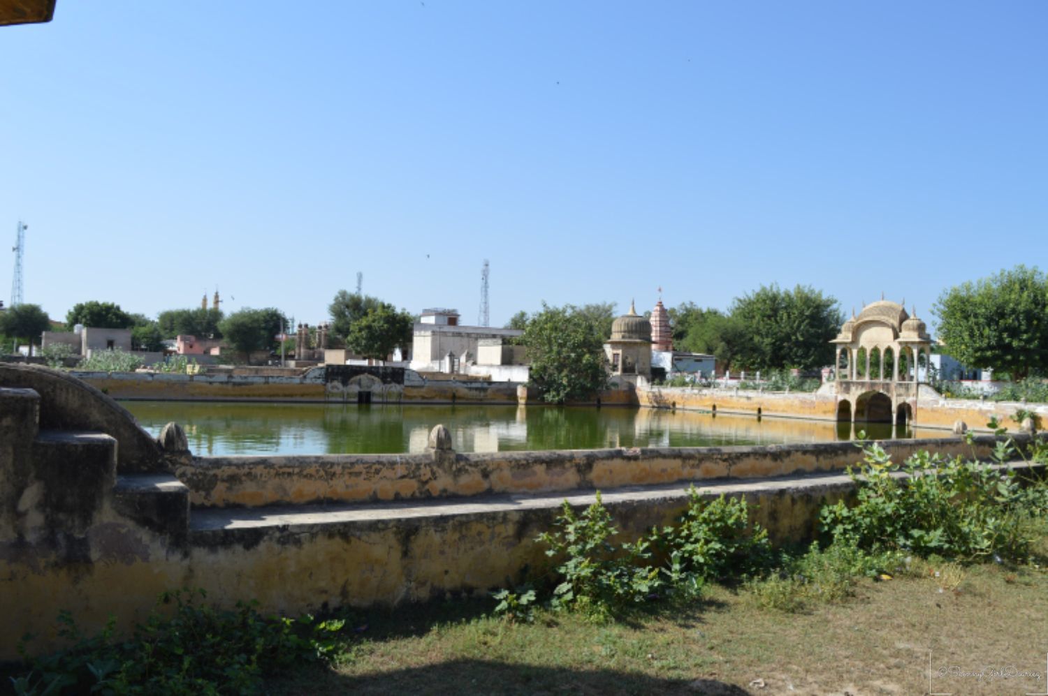 This is one of the main water tanks in the village. The structure is a rectangular shape. It is a water tank or a large sized poo, that once was used by the kings and his family to bathe. These water tanks later were used by the local population during a droughts. These days its just holds stagnant water.