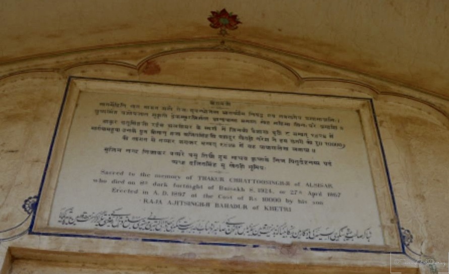 The Cenotaphs were built by the royal families back in the era to honor their ancestors, and is basically an empty tomb or monument. This one belongs to Thakur Chhotu Singh from the Alsisar dynasty. These are beautiful open-air structures supported by pillars and have massive domes or . Some of the pillars have beautiful carvings