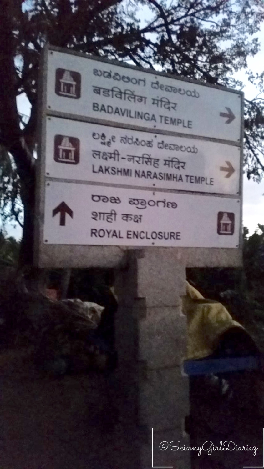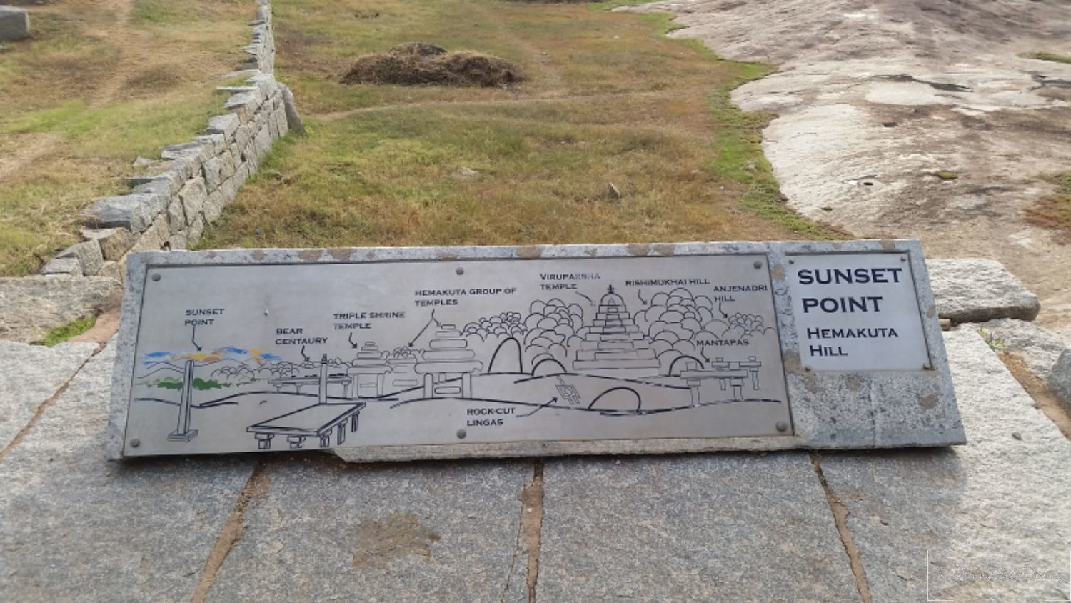 To get to the Virupaksha temple, we need to walk through and up the boulders of the Hemakuta hill. Just below the foot of the hills is the start of the trail. There is a map that lists the routes and key areas to visit. As we enter the route, you get to see a monolithic statue called Sadivekalu Ganesha.