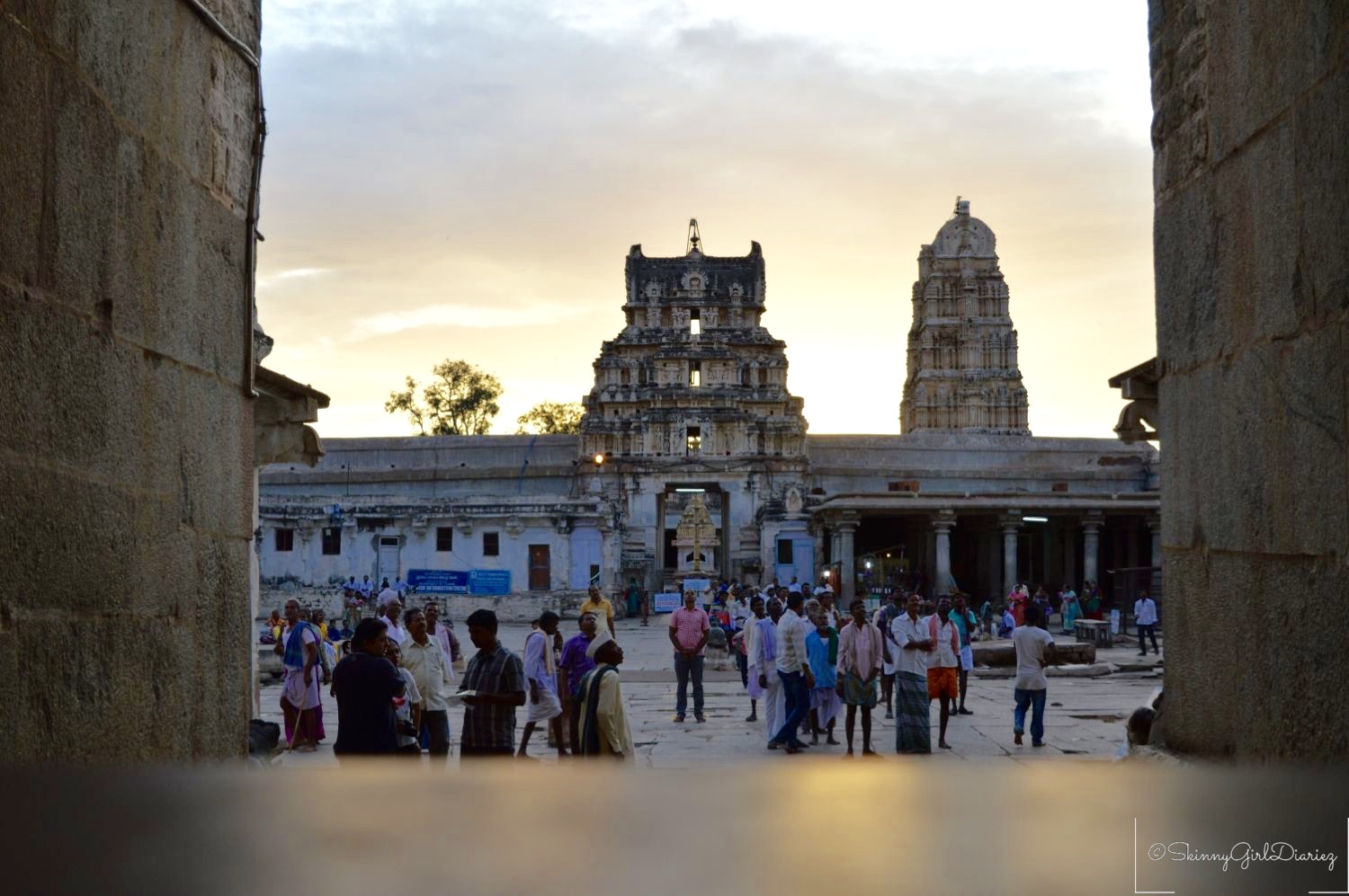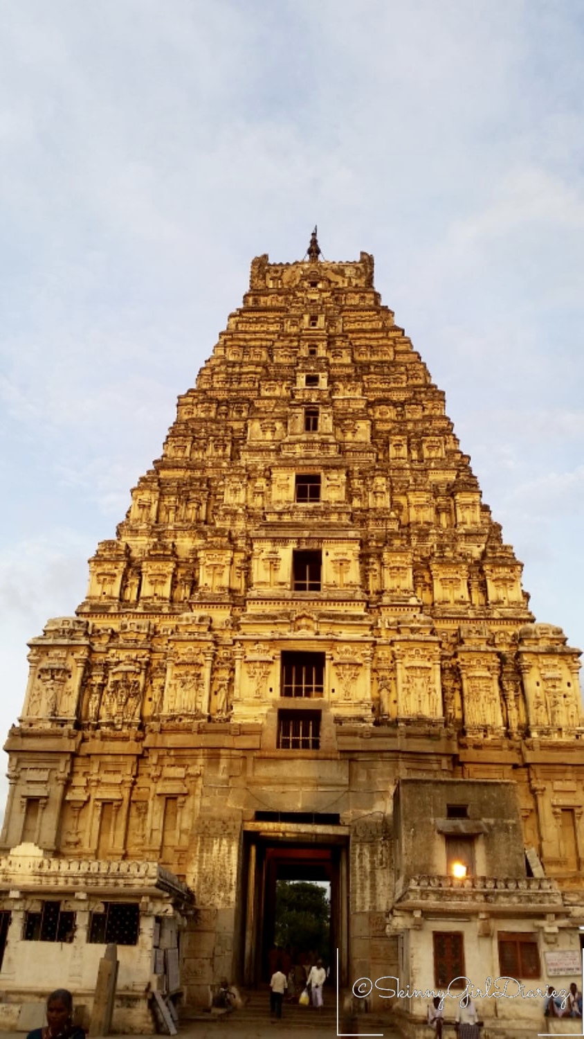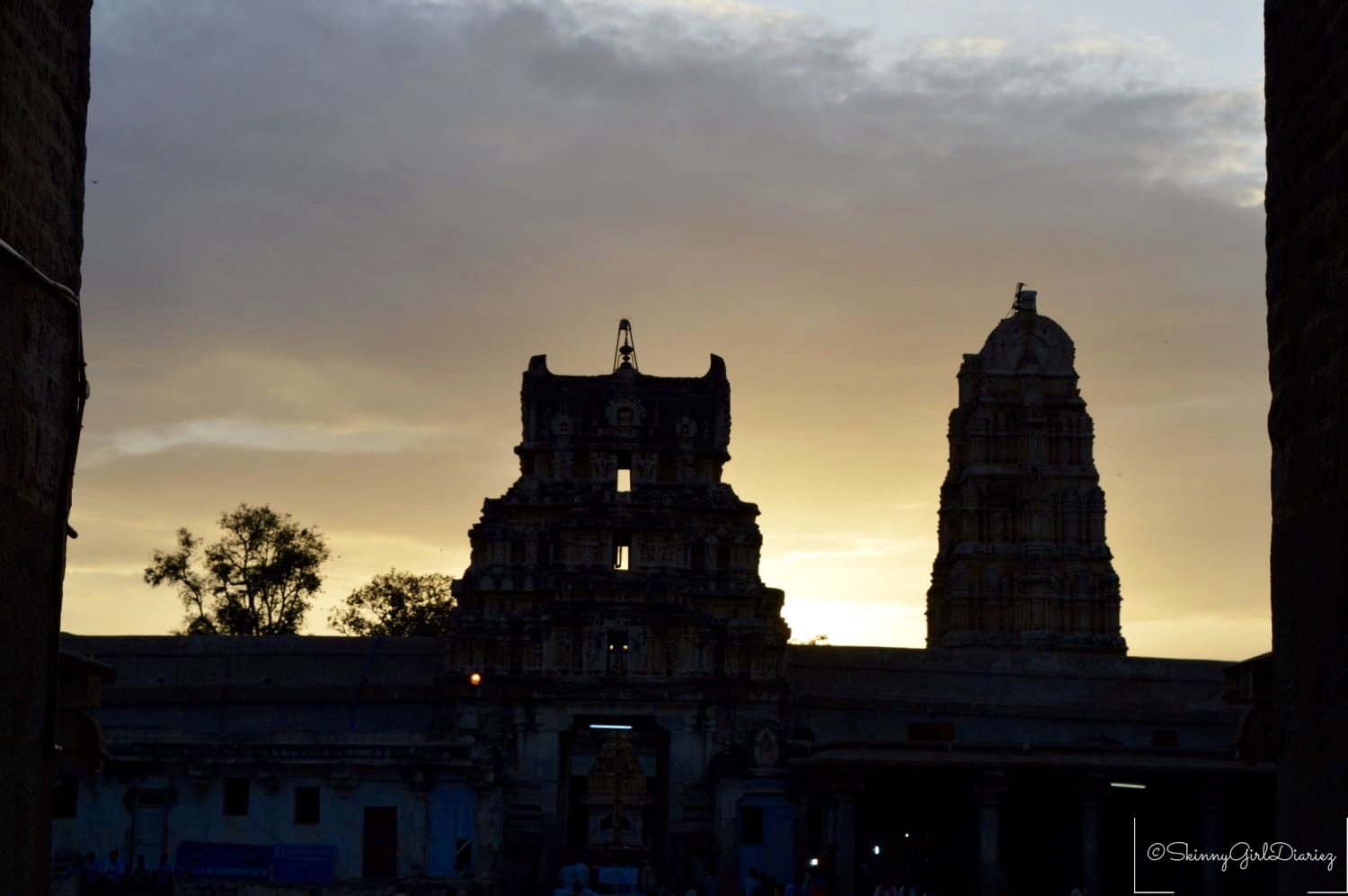 Lord Shiva, impressed with her devotion and dedication agreed to marry her. He took on the name Pampapati (husband of Pampa). Hemakuta means ‘heap of gold’ in sanskrit. During their wedding, the heavens opened up and showered this place with gold. The place where they married is today called “Virupaksha Temple.” Even today, during sunset, the temple glows like gold. There is no filter needed for those clicking images. Just splendid.