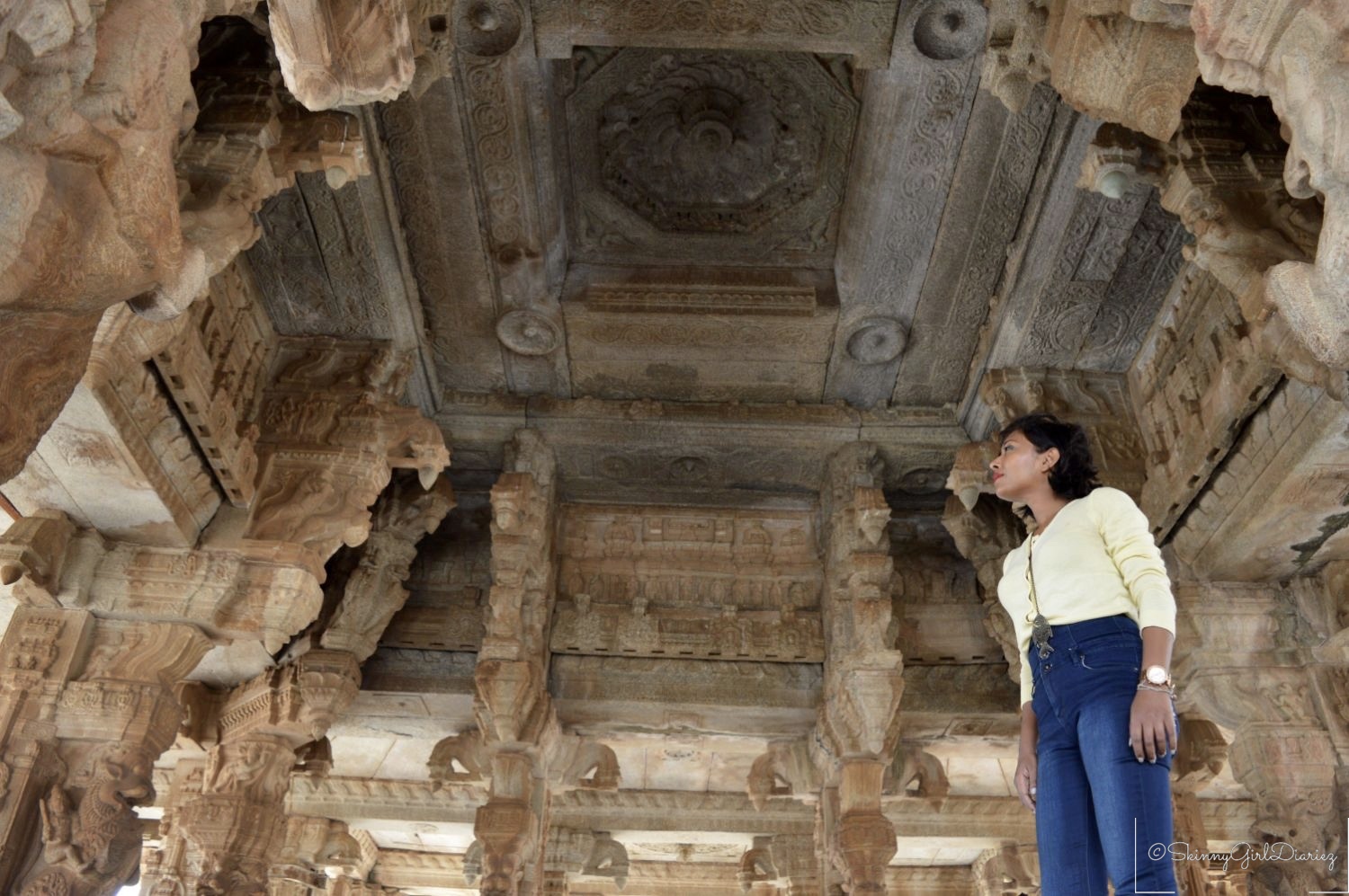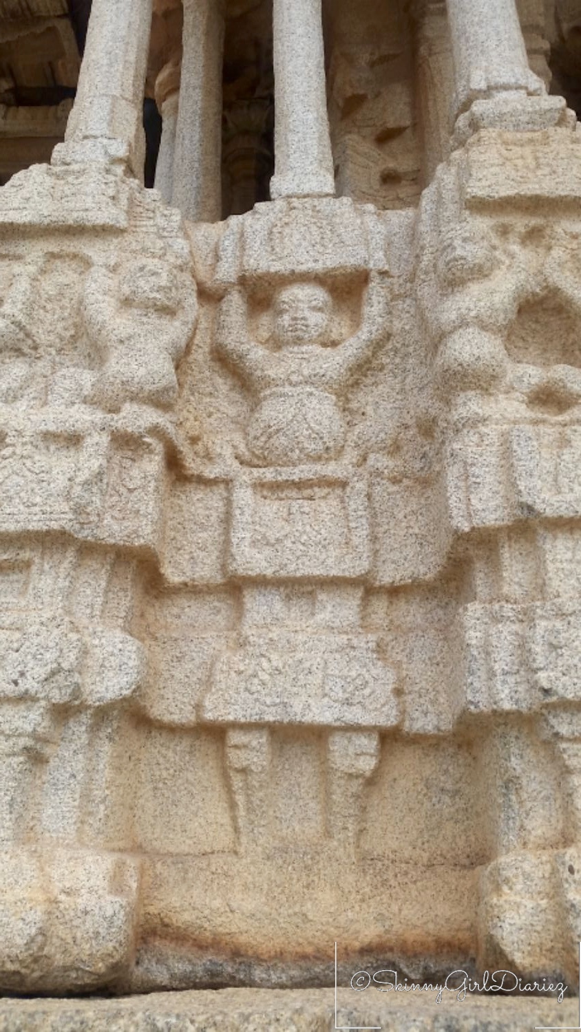 Again one is left at awe of the amazing architecture. The insides, even the ceiling has been carved in the form of a lotus. On the east side is the musicians hall, known more so for the sculptures of musicians and dancers craved on the pillars. The south side of the hall, has got Yalis, are mythical creatures. Whereas, the north side of it has pillars with Narasimha carved on it. To the west is just a closed hall with open porches on both side.