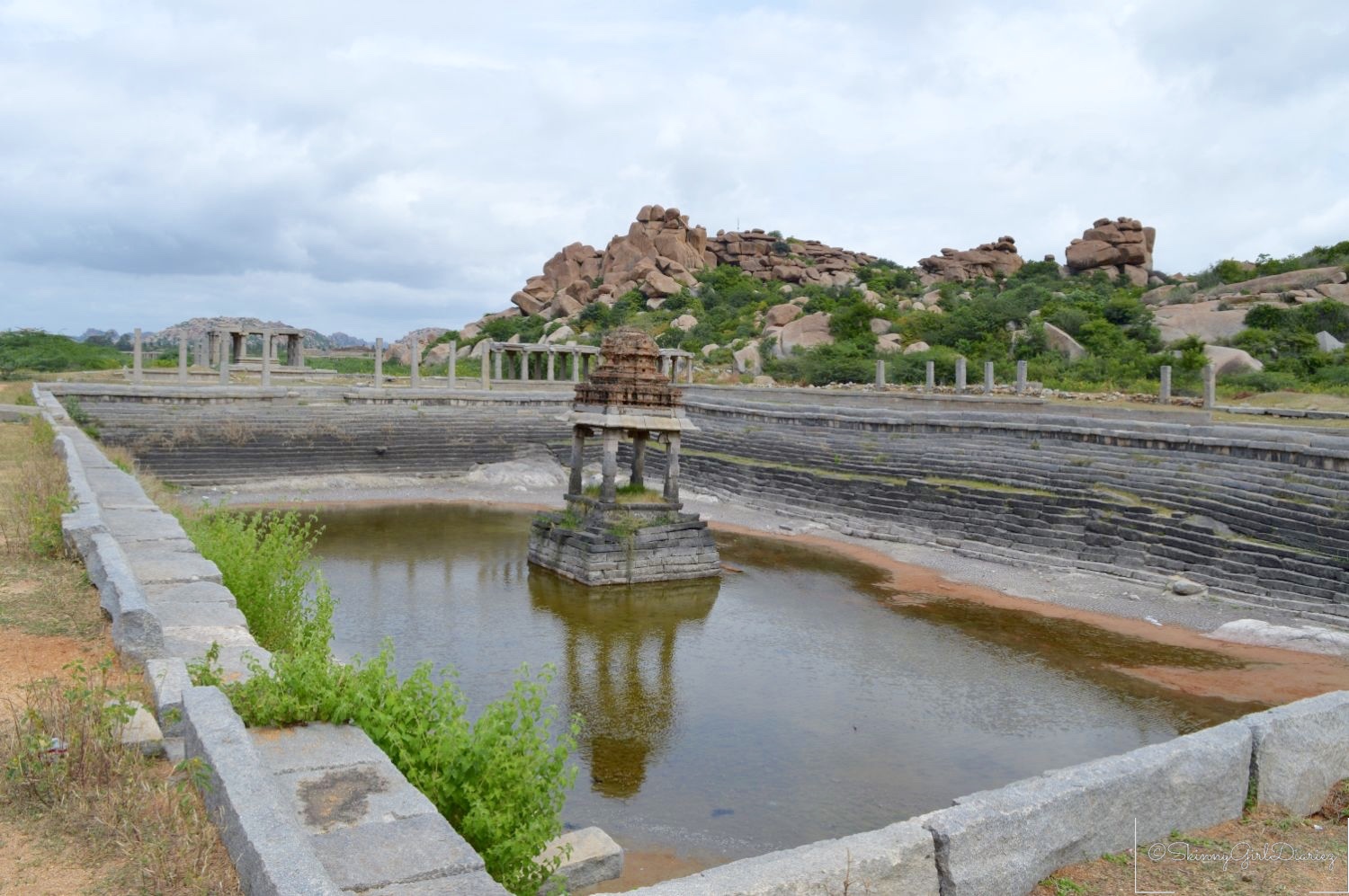Next, we walk out of the temple and head to another place that holds importance. Puskarni is a temple tank and was used more for ritual baths. During the monsoon the tank fills up.